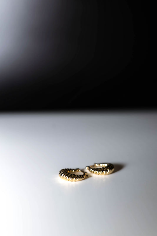 Gold Mini Croissant Twist Hoop Earrings